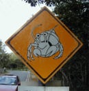 夜明山にはオカヤドカリの動物注意!看板があります